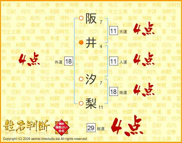 阪井汐梨さんの人運は11画の4点!
