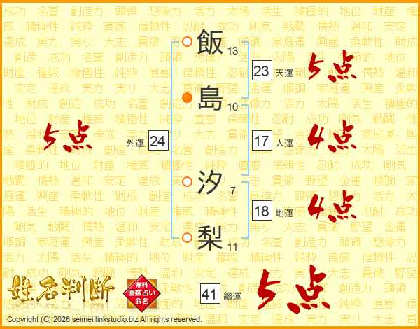 飯島汐梨さんの総運は41画の5点!