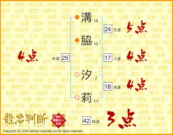 溝(14画)脇(10画) 汐(7画)莉(11画)