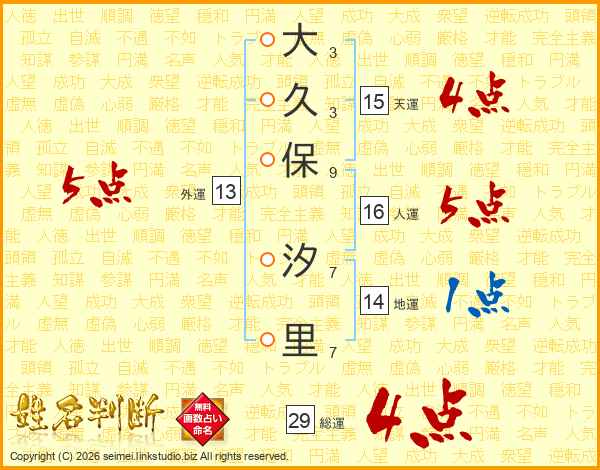 大久保汐里さんの総運は29画の4点!