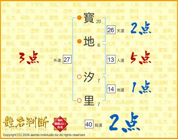 寳地汐里さんの天運は26画の2点!