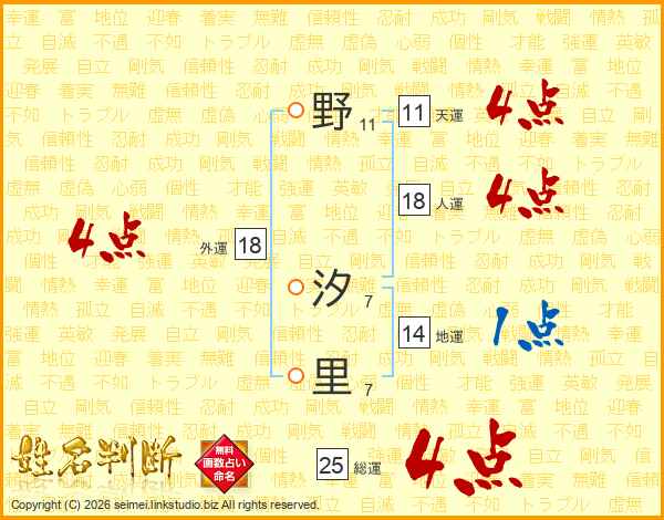 野汐里さんの外運は18画の4点!