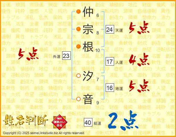 仲宗根汐音さんの総運は40画の2点!