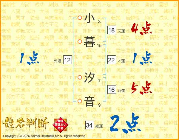 小暮汐音さんの天運は18画の4点!