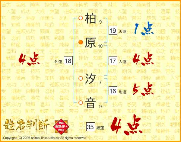 柏原汐音さんの外運は18画の4点!