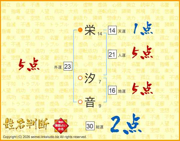 栄(14画) 汐(7画)音(9画)