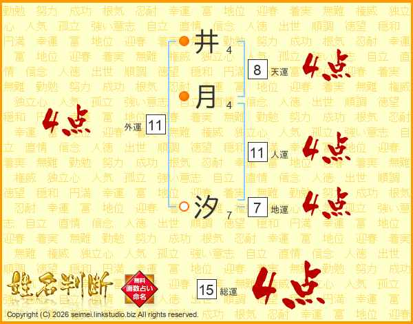 井月汐さんの人運は11画の4点!
