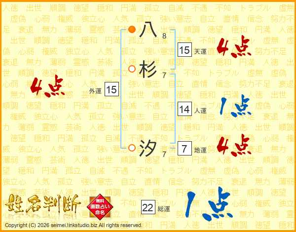 八杉汐さんの総運は22画の1点!