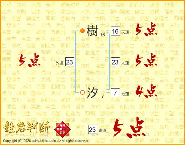 樹汐さんの総運は23画の5点!