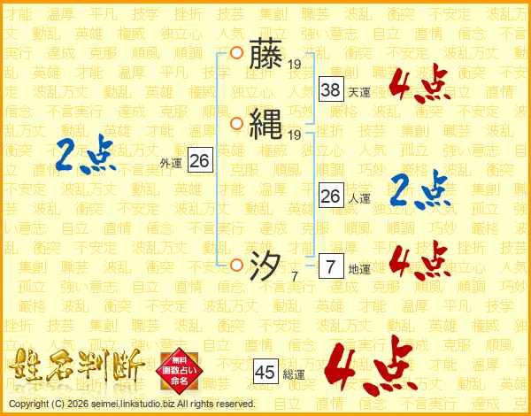 藤縄汐さんの天運は38画の4点!