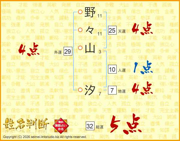 野々山汐さんの総運は32画の5点!