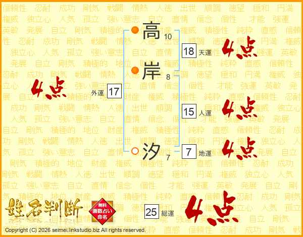 高岸汐さんの総運は25画の4点!