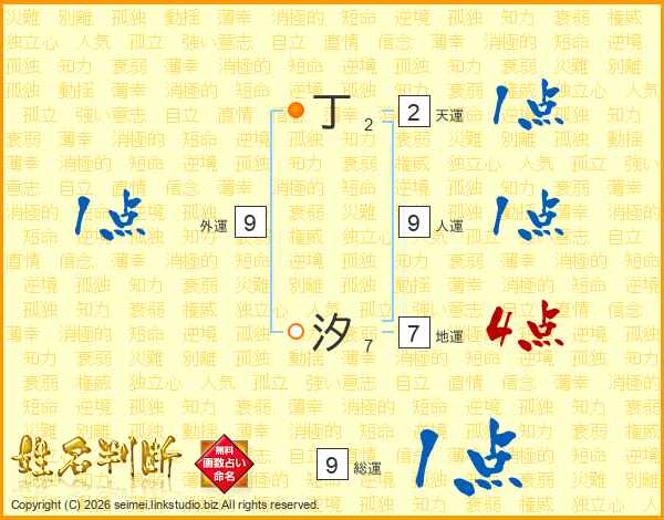 丁汐さんの総運は9画の1点!