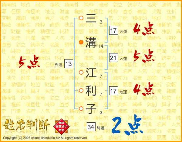 三(3画)溝(14画) 江(7画)利(7画)子(3画)