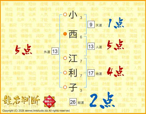小西江利子さんの人運は13画の5点!