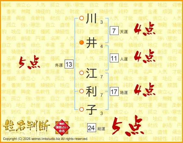 川井江利子さんの総運は24画の5点!