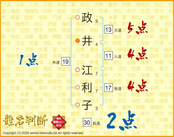 政(9画)井(4画) 江(7画)利(7画)子(3画)