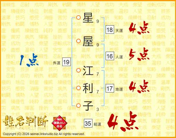 星屋江利子さんの総運は35画の4点!
