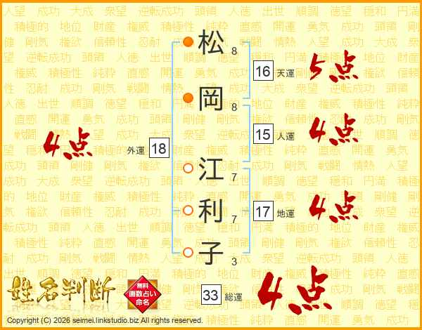 松岡江利子さんの総運は33画の4点!