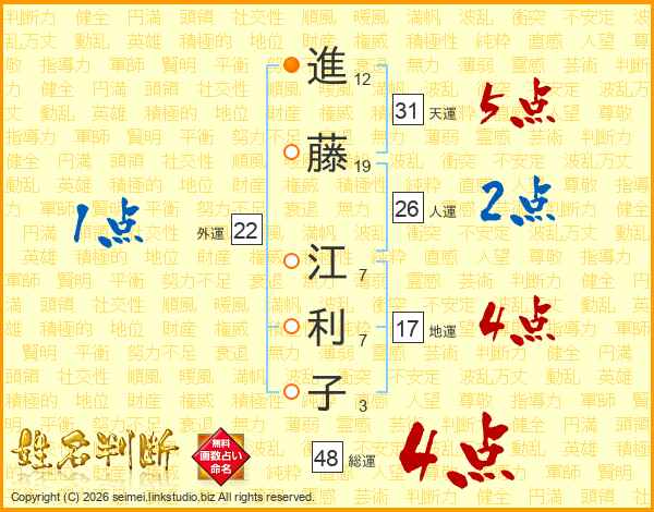 進藤江利子さんの総運は48画の4点!