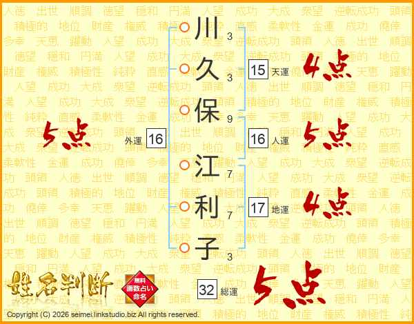 川久保江利子さんの総運は32画の5点!