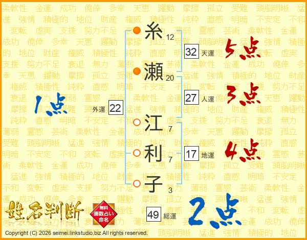 糸瀬江利子さんの総運は49画の2点!