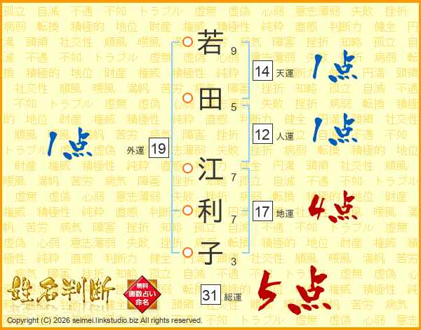 若田江利子さんの総運は31画の5点!