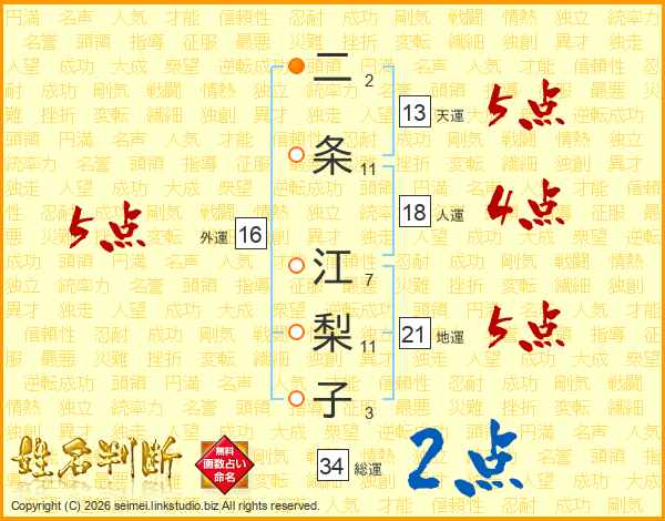 二条江梨子さんの天運は13画の5点!