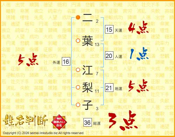 二葉江梨子さんの外運は16画の5点!