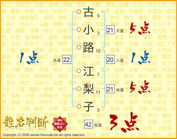 古小路江梨子さんの天運は21画の5点!