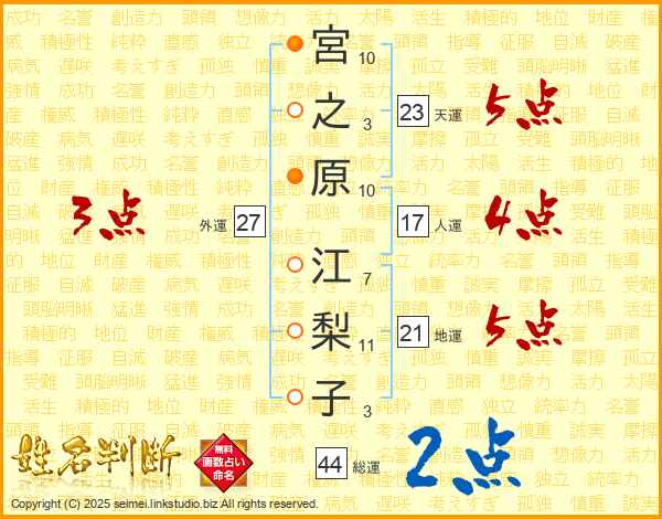 宮(10画)之(3画)原(10画) 江(7画)梨(11画)子(3画)