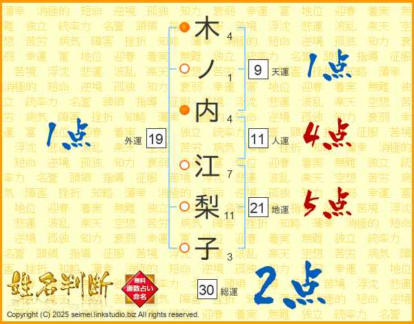 木ノ内江梨子さんの人運は11画の4点!