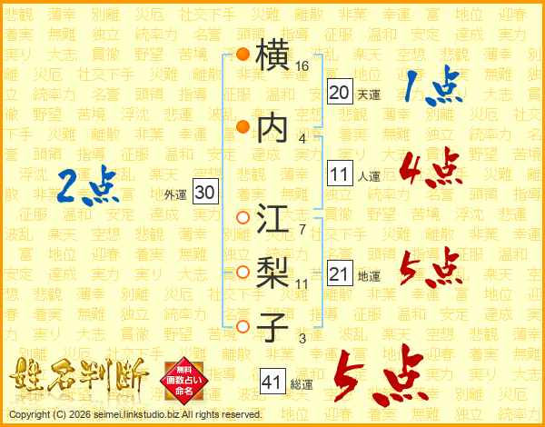 横内江梨子さんの総運は41画の5点!