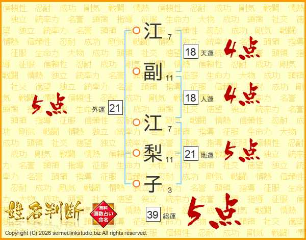 江(7画)副(11画) 江(7画)梨(11画)子(3画)