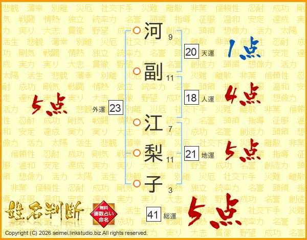 河副江梨子さんの外運は23画の5点!
