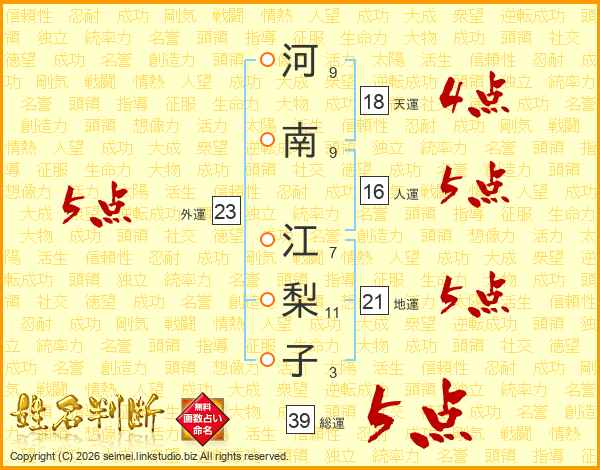 河南江梨子さんの総運は39画の5点!