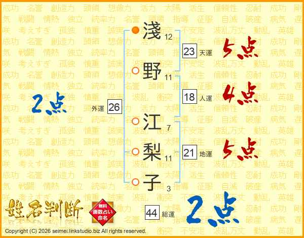 淺野江梨子さんの天運は23画の5点!