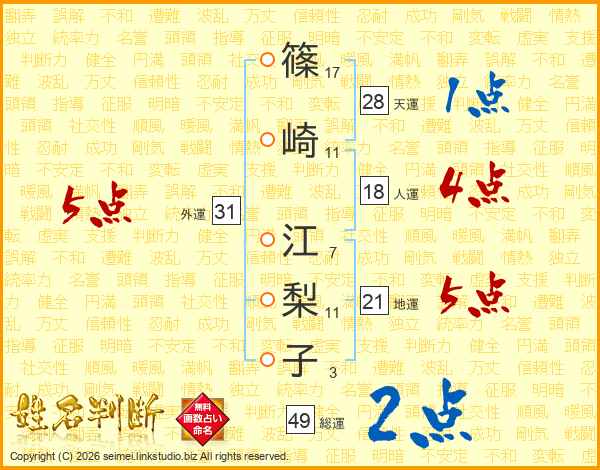篠崎江梨子さんの外運は31画の5点!