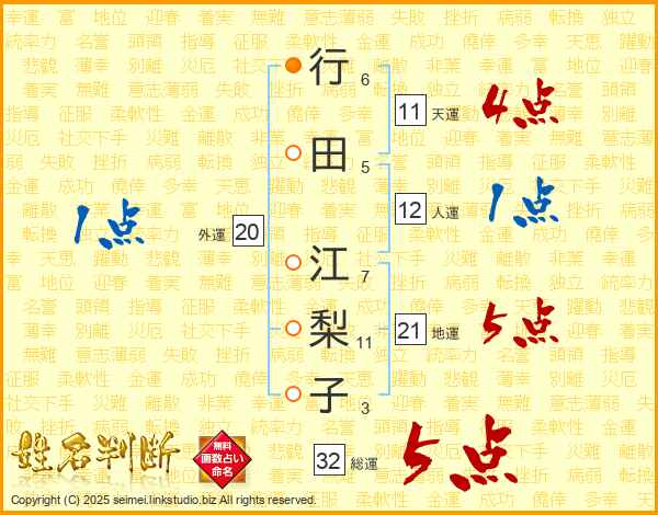 行田江梨子さんの総運は32画の5点!
