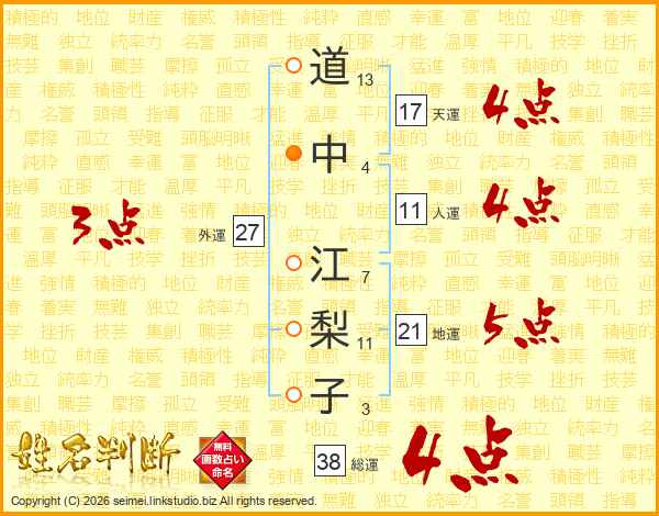 道中江梨子さんの総運は38画の4点!