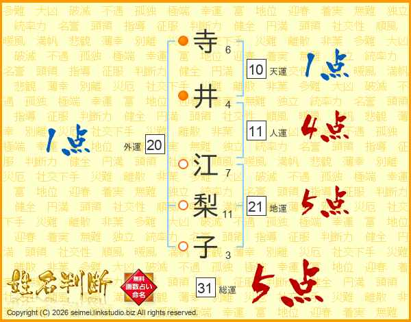寺井江梨子さんの総運は31画の5点!