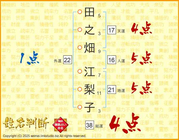 田之畑江梨子さんの総運は38画の4点!