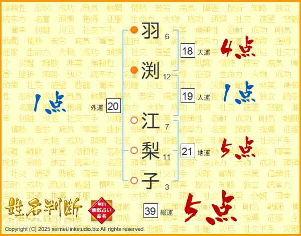 羽渕江梨子さんの総運は39画の5点