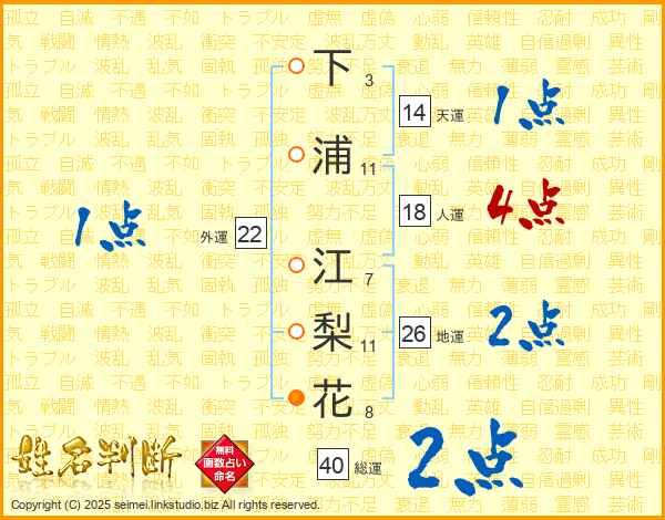 下浦江梨花さんの総運は40画の2点!