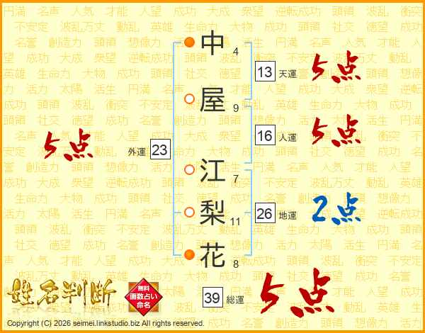 中屋江梨花さんの総運は39画の5点!