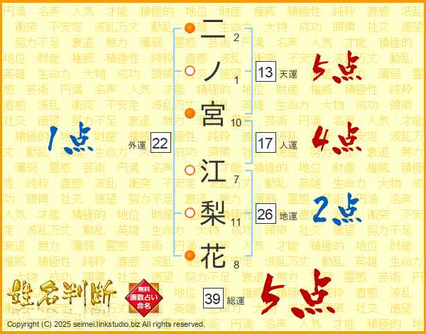 二ノ宮江梨花さんの総運は39画の5点!