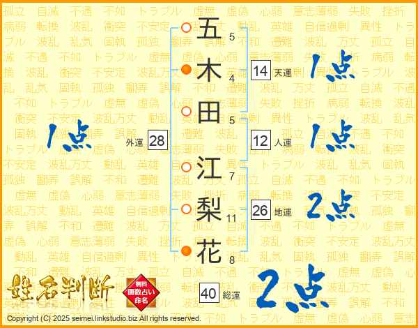 五木田江梨花さんの天運は14画の1点!