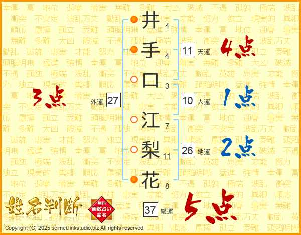 井(4画)手(4画)口(3画) 江(7画)梨(11画)花(8画)