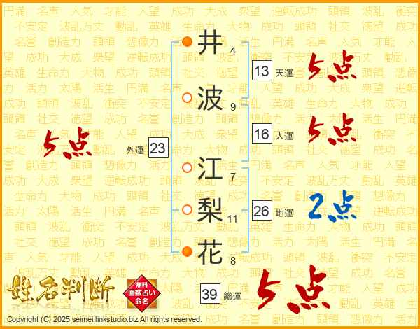 井波江梨花さんの総運は39画の5点!