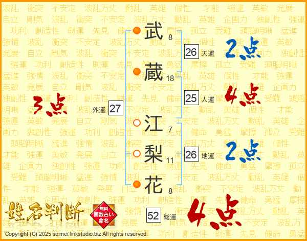 武蔵江梨花さんの人運は25画の4点!